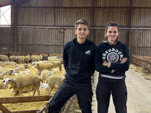 Clément et Julie Rouquié sont la sixième génération d’éleveurs. Lui s’est installé en 2018, et sa petite sœur en 2022. Ils gèrent une exploitation de 600 hectares et plus de 1 400 bêtes. Ils élèvent des brebis Causse du Lot, dont la viande est labellisée et vendue à l’abattoir de Gramat. En ce moment, les Rouquié sont en plein agnelage. “Ça, on ne peut pas le mécaniser !”, plaisante le grand-père, Pierre. Dans les quinze derniers jours, 360 agneaux ont vu le jour. Julie veille dans ce qu’elle appelle “la maternité”, l’un des hangars de la ferme. Elle n’intervient pas lors de la naissance. Une demi-heure après avoir vu le jour, l’agneau est censé marcher. “On attend qu’il soit complètement sec et on le puce. Je désinfecte le cordon, puis je fais des lots. Rouge, bleu, violet… Les agneaux sont coquins, ils montent sur le dos de leur mère et s’échappent dans le couloir. Ils font la course !”, s’amuse la jeune agricultrice. Alors les couleurs lui permettent de retrouver à quel troupeau l’agneau appartient, et donc de retrouver sa mère plus facilement.