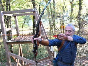 L’aventure commence au bout d’un chemin de pierre blanche, longeant un ruisseau, menant à l’orée d’un bois, dans les environs de Gimont. Loin de la légendaire forêt de Sherwood, c’est ici que Serge Aronovitz, le “Robin des Bois” des temps modernes, revêt son costume d’archer. Pas de destrier à ses côtés, mais un coffre de voiture grand ouvert, avec un carquois et un protège-bas en cuir, des flèches aux plumes de rapaces aux couleurs “Sang et Or” – clin d’œil à ses attaches catalanes –, sans oublier la pièce maîtresse de sa panoplie : son “arc recurve traditionnel”.