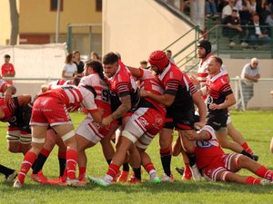 Les Rouges et Noirs saverdunois lancent les débats contre le vent. Une première période qui montre toute la tension que ce duel comporte. Personne n’arrive à véritablement se livrer. Si les intentions sont là, les maladresses, de chaque côté, se multiplient. Saverdun propose de belles séquences mais sans concrétisation. Seuls les buteurs arrivent à surnager dans ces quarante premières minutes stressantes. Alexi Denjean est le premier à se signaler (3-0, 6e) avant que Nathan Ducos ne lui réponde (3-3, 12e). Réduits à quatorze (carton jaune, 23e), les Tarn-et-Garonnais résistent et ne concèdent que trois points, une pénalité d’A. Denjean (6-3, 25e). Mieux, Nathan Ducos double la mise (35e) et tout le monde rentre aux vestaires dos à dos (6-6).