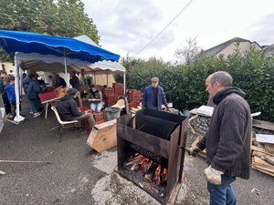 Sur place, l’ambiance était conviviale : le foyer alimenté en bois, les bénévoles épluchant consciencieusement les fruits avant de les faire griller, répandant une délicieuse odeur qui ouvrait l’appétit des curieux massés autour des stands.