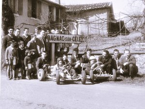 Au début des années 60, la motorisation de la population allait bon train ; avant de pouvoir obtenir une voiture, le passage par la motocyclette était presque obligatoire ; Lulu Moulène, mécanicien, acheminait des wagons entiers de deux-roues d’occasion en gare de Bagnac. De son côté, Raymond Grès importait des tracteurs, souvent de Grande-Bretagne, pour remplacer les attelages de bœufs ou de vaches. Les Ets Aymard fonctionnaient à plein, équipant en fils de fer barbelés, sur plus de cent kilomètres à l’entour, toutes les campagnes grâce aux rachats post-guerre d’Algérie. Une nouvelle époque voyait le jour, pleine d’espoirs et de plein-emploi. Bagnac était dynamique et un nouveau sport allait se développer : le karting. Ce sport balbutiant permettait l’expression de l’inventivité et de la créativité des mécaniciens et serruriers pour les carrosseries. C’est ainsi que naquit “Le Karting-Club Jaune et Noir”, sous l’impulsion de Lulu Moulène, Pierre Aymard, et Jean Najac, maire de l’époque. Avec Gabriel Bourrel, Raymond Goutel et comme mécanicien en chef et touche-à-tout de génie : André Lac, ils allaient concevoir des bolides à partir de presque rien. Les routes étant encore peu fréquentées, la route des Castors (devenue avenue Pierre Aymard) servait le plus souvent de banc d’essai et de mise au point. Lors de la fête votive d’août 1960, le dimanche, une course fut organisée dans l’ex-domaine de Madame Crillé, devenue alors propriété de la commune. Le circuit empruntait, à quelque chose près, la circulade de la cité de la Pradelle, lieu alors promis à la construction. L’Écho de Bagnac dans son numéro de septembre 60 s’en fait le rapporteur. “Les Bagnacois, comme il se devait, applaudirent à tout rompre les représentants de leurs couleurs : Lac, Verdier, Montergous qui se classèrent tous pour la finale. Lac, sans un incident mécanique, aurait remporté la coupe et malgré une remontée sensationnelle, il dut se contenter de la seconde place. La cause du karting est définitivement gagnée. Le public retrouve là l’atmosphère des grandes courses d’autos.” Malheureusement, les karts de l’écurie “Jaune et Noir”, de fabrication artisanale, ne purent rivaliser, lors des compétitions, avec les engins mieux élaborés, dotés de différentiels perfectionnés et de moteurs plus performants. Ce n’est, somme toute, qu’une anecdote dans l’histoire de la commune !