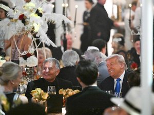 Le locataire de la Maison-Blanche est présent. Il a troqué sa cravate rouge emblématique contre une version bleu satinée. À ses côtés, le secrétaire d’État Marco Rubio, porte un nœud papillon classique, fidèle au héros du roman. Melania Trump brille, en revanche, par son absence. Elle apparaissait pourtant encore deux jours plus tôt au bras de son mari, lors de la traditionnelle distribution de bonbons à la Maison-Blanche.