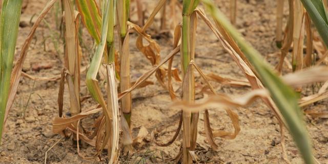 Des plants de maïs qui souffrent de la sécheresse en Vendée, le 18 août 2025. MATHIEU THOMASSET / HANS LUCAS VIA AFP