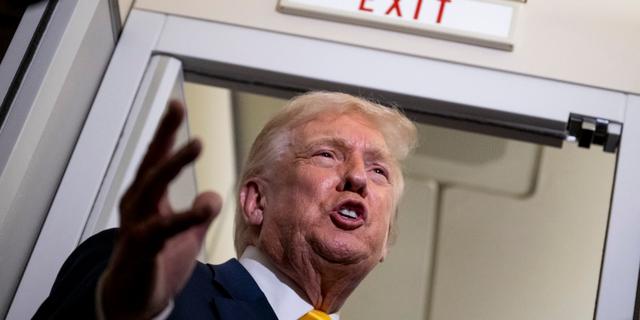 Donald Trump lors d’une conférence de presse à bord du Air Force One, le 14 novembre 2025. ROBERTO SCHMIDT / GETTY IMAGES VIA AFP