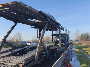 À l’arrivée des sapeurs-pompiers du centre de secours de Castelsarrasin-Moissac, le départ de feu avait déjà été éteint par le routier à l’aide d’un extincteur. Aucune flamme ni fumée n’étaient alors visibles. Les véhicules transportés sur les plateaux supérieur et inférieur n’ont pas été endommagés.