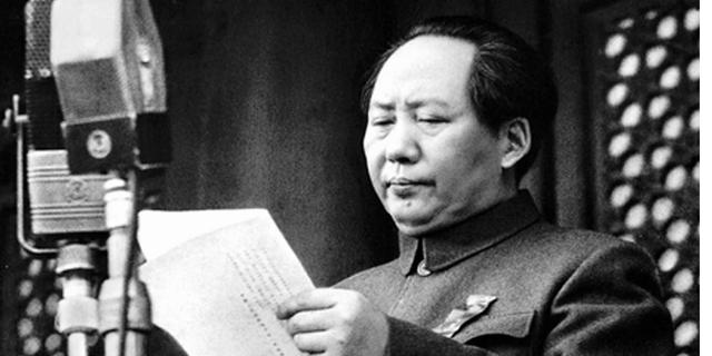 Le dirigeant du Parti communiste chinois annonce l’avènement de la République populaire de Chine du haut de la place Tiananmen, à Pékin. THE NATIONAL MUSEUM/NEWSCOM/SIPA