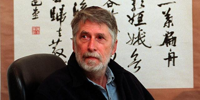 Simon Leys, amoureux de la calligraphie chinoise, à Canberra (Australie) en 1998. WILLIAM WEST/AFP