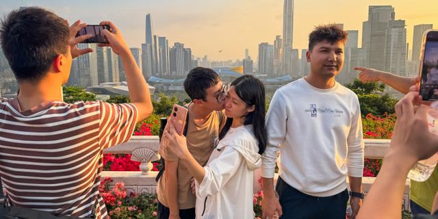 Coucher de soleil sur Shenzhen, vu de la terrasse d’observation du parc Lianhuashan, en novembre 2024. CHENG XIN/GETTY IMAGES