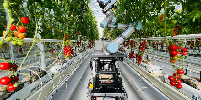 Geair, le premier robot capable d’effectuer un travail de pollinisation hybride, dans une serre à Pékin, en novembre 2024. XINHUA-REA