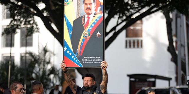 Un portrait de Nicolas Maduro brandi par l’un de ses partisans, le 3 janvier, à Caracas. PEDRO MATTEY / AFP