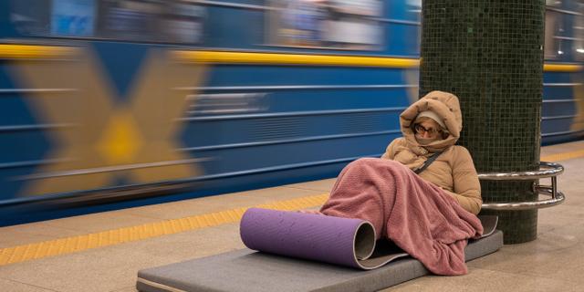 Des personnes se réfugient dans une station de métro pendant l’attaque nocturne menée par la Russie à Kiev, en Ukraine, le 20 janvier 2026. DANYLO ANTONIUK/AP/SIPA