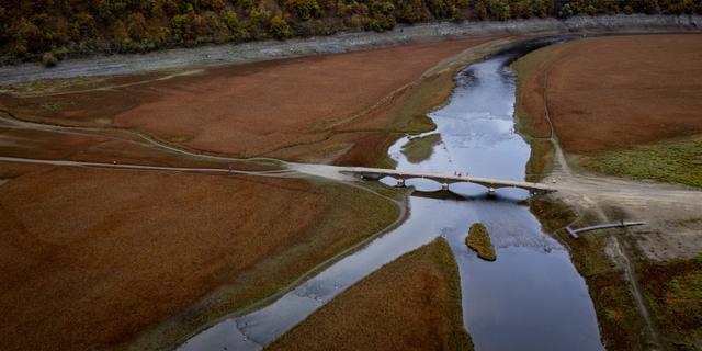 Le lac Edersee avec un niveau d’eau bas, en Allemagne, le 16 octobre 2025. SWEN PFORTNER / DPA PICTURE-ALLIANCE VIA AFP
