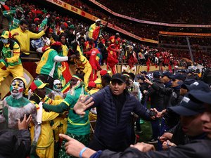 Les affrontements impliquaient notamment certains supporters sénégalais affiliés au groupe du “Douzième Gaïndé”, qui auraient pénétré sur le terrain. Des images montrant des échanges violents, avec des chaises et du matériel projetés, ont choqué bien au-delà des frontières marocaines.