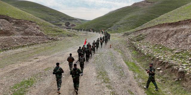 La terre colle encore aux semelles, lourde de la pluie tombée. Dans les collines kurdes, non loin du cours large et paresseux du Grand Zab, un affluent du Tigre, plusieurs centaines d’hommes avancent en cadence, arme contre la poitrine. Le métal des kalachnikovs cogne parfois contre les sangles, les carabines M4 brillent sous un rayon de soleil timide, les mitrailleuses pèsent lourd sur des épaules encore maigres. Ici, à un peu plus de 30 kilomètres d’Erbil, la capitale du Kurdistan irakien, une armée en exil s’entraîne à la guerre.