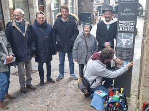 Sur une douzaine de panneaux municipaux, des stickers bleus ont fait leur apparition depuis le début de la semaine. Rien à voir avec de la publicité ou une quelconque revendication, ces autocollants jalonnent en fait un nouveau parcours de découverte de la ville. Intitulé “les Voix de Figeac”, cet itinéraire sonore permet de découvrir ou de redécouvrir à l’aide de son téléphone des sites incontournables du centre-ville. “Il suffit d’un smartphone et de flasher le QR Code pour accéder à un témoignage” résume Olivier Pons, membre du conseil consultatif citoyen à l’origine de cette visite inédite. Créé en 2021, ce groupe d’habitants tirés au sort par le conseil municipal a travaillé sur plusieurs projets dont la création de ce parcours accessible à tous, sur un simple clic. “Dans la commission patrimoine, on nous a proposé de sortir du chapeau une idée originale. On a eu envie avec ce parcours sonore de s’intéresser à des endroits de Figeac pas forcément emblématiques mais qui présentent un intérêt pertinent” explique Olivier Pons qui a testé la visite lundi après-midi, accompagné par les membres de la commission, Paule Villalon, Philippe Besson, Christian Daynac et Luc Sarion.