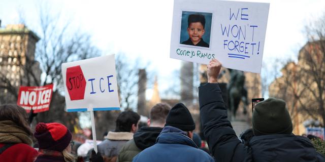 Le portrait de Liam Ramos lors d’une manifestation à New-York, le 23 janvier 2026. ANGELA WEISS / AFP