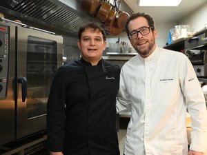 Mardi, à 11 h 30, en cuisine l’ambiance est déjà concentrée. Les fourneaux s’activent et l’odeur d’un plat qui mijote chatouille les narines. “On a commencé vers 7 heures, comme d’habitude”, sourit Romain Bouëtard, gérant de l’établissement. Depuis plusieurs années, son restaurant assure la cantine scolaire, un partenariat devenu naturel pour les habitants. “Les menus sont préparés le mercredi pour toute la semaine, avec Samuel, notre second de cuisine. On essaie toujours d’équilibrer : que ça plaise aux enfants, aux parents et que ce soit nutritionnellement correct.”