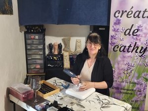 La création s’impose alors comme une évidence. Passionnée depuis toujours par le point de croix et le travail manuel, Cathy fonde en 2022 « Les Créats de Cathy ». Elle débute par la confection textile avant de se diversifier vers la gravure sur verre réalisée à la main au Dremel et à la pointe diamant, ainsi que la création de bijoux. Ses réalisations s’adressent aux enfants, aux femmes et aux mariages, avec une attention particulière portée aux pièces uniques et aux cadeaux personnalisés.