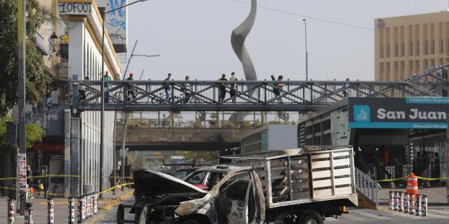 Un véhicule calciné, dans la zone où l’armée mexicaine a abattu Nemesio Oseguera, alias « El Mencho », à Guadalajara, dans l’Etat de Jalisco au Mexique, le 22 février 2026. STRINGER/ANADOLU VIA AFP