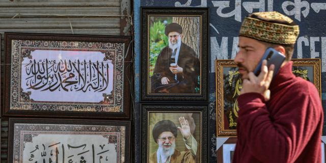 Un homme passe devant des portraits de l’ayatollah Khamenei exposés à Srinagar le 24 février 2026. FIRDOUS NAZIR / NURPHOTO VIA AFP