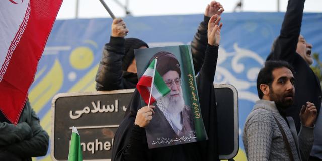 Des manifestants portent le portrait du guide suprême iranien Ali Khamenei tué dans des frappes américaines et israéliennes, le 28 février 2026. FATEMEH BAHRAMI / ANADOLU VIA AFP