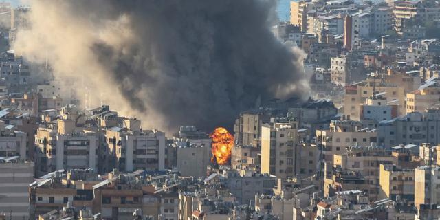 Des panaches de fumée s’élèvent après les bombardements israéliens sur la banlieue sud de Beyrouth, le 2 mars 2026. IBRAHIM AMRO/AFP
