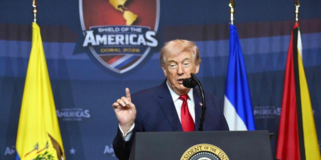 Le président américain Donald Trump s’exprime lors du sommet « Bouclier des Amériques » au Trump National Doral de Miami, en Floride, le 7 mars 2026. SAUL LOEB / AFP