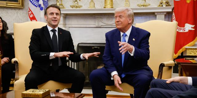 Rencontre entre Emmanuel Macron et Donald Trump dans le Bureau ovale de la Maison-Blanche , le 24 février 2025. LUDOVIC MARIN/AFP