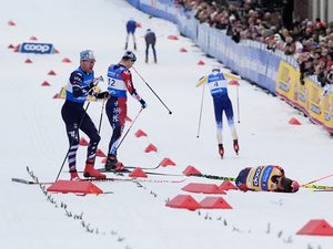 Alors que Klaebo était dans le groupe de tête, l’un de ses adversaires, Ben Ogden, a chuté juste devant lui, entraînant quatre fondeurs au sol avec lui, dont le Norvégien. Ce dernier a été touché au niveau de l’arrière de son crâne d’après les images partagées par Eurosport. “Il s’est frappé la tête assez violemment”, expliquait jeudi soir, Ove Feragen, médecin de l’équipe nationale norvégienne à ce même média local.