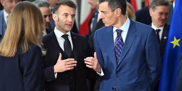 Le président français Emmanuel Macon et le Premier ministre espagnol Pedro Sánchez lors d’un sommet européen, à Bruxelles, le 19 mars 2026. DURSUN AYDEMIR/ANADOLU VIA AFP