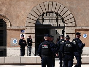 À l’extérieur, au cœur du centre-ville d’Aix-en-Provence, les rues autour du palais Monclar ont été bloquées par des camions de CRS pour faciliter l’arrivée des convois des détenus alors que des préparatifs d’une “action violente”, en lien avec au moins un des accusés, ont été découverts tout récemment, d’après les autorités. Le tribunal et ses abords resteront verrouillés le temps du procès. Des agents des forces de l’ordre patrouillent armés autour du palais de justice et des snipers seraient sur les toits. Les accusés et leur convoi sont surveillés en permanence depuis les airs par un hélicoptère, que ce soit dans le tribunal ou lors du cheminement des convois pénitentiaires.