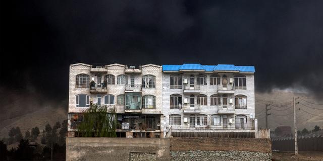 Un épais nuage de fumée enveloppe un immeuble résidentiel après un raid aérien nocturne sur la raffinerie de pétrole de Shahran, au nord-ouest de Téhéran, le 8 mars 2026. AFP