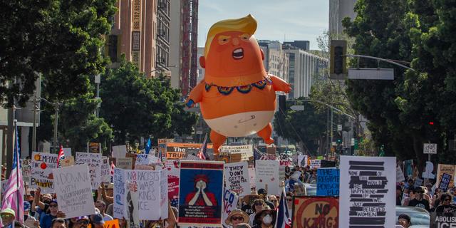 Une mobilisation « No Kings » à Los Angeles (Californie), le 28 mars 2026. APU GOMES / GETTY IMAGES VIA AFP