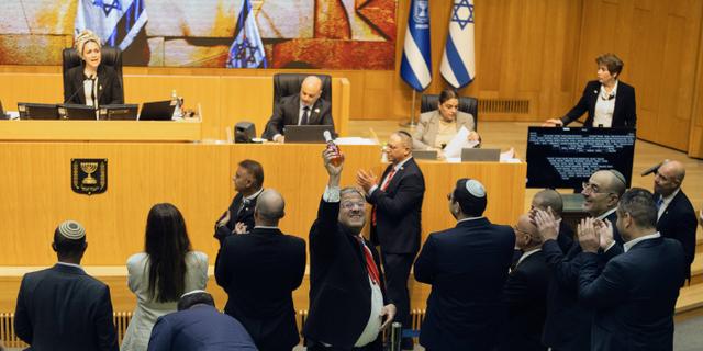 Le ministre d’extrême droite israëlien Itamar Ben Gvir (au centre) célèbre l’adoption de la loi sur la peine de mort à la Knesset, le 30 mars 2026. ITAY COHEN/AP/SIPA