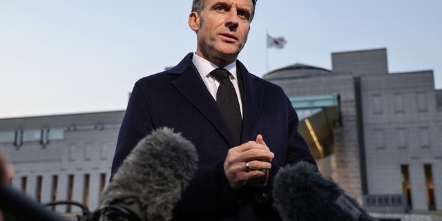 Le président de la République française Emmanuel Macron devant la presse, lors d’une visite du Mémorial de la guerre de Corée à Séoul, le 2 avril 2026. LUDOVIC MARIN / AFP