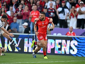 L’ailier du Stade Toulousain s’est amusé du geste technique de Kalvin Gourgues qui a feinté la passe pour aller inscrire un essai.