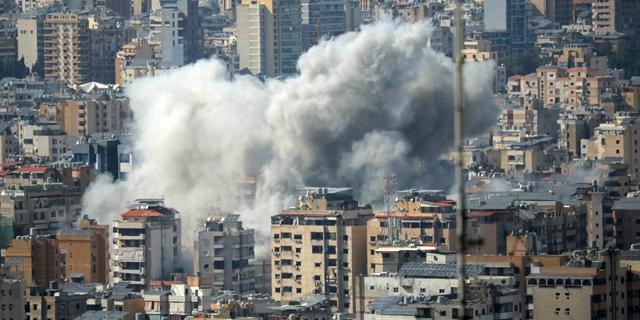 De la fumée sur le lieu d’une frappe israélienne dans la banlieue sud de Beyrouth, le 5 avril 2026. Une source médicale a indiqué à l’AFP que l’impact s’est produit à 100 mètres de l’hôpital Rafik Hariri University, plus grand hôpital public du Liban IBRAHIM AMRO / AFP