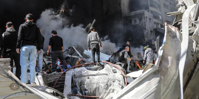 Le site d’une frappe aérienne israélienne dans le quartier très central de la Corniche al-Mazraa à Beyrouth, le 8 avril 2026. IBRAHIM AMRO / AFP