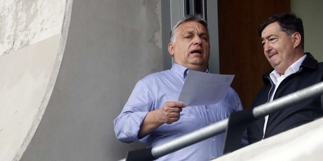Le Premier ministre hongrois Viktor Orbán avec son ami d’enfance Lőrinc Mészáros, devenu la première fortune du pays, à Felcsut, en mai 2019. LASZLO BALOGH/AP/SIPA