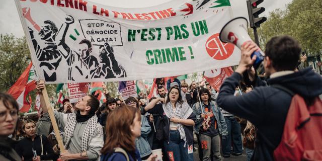 Une manifestation de soutien à la Palestine et contre le projet de loi Yadan visant à lutter contre les nouvelles formes d’antisémitisme, à Paris, le 12 avril 2026. BASTIEN OHIER / HANS LUCAS VIA AFP