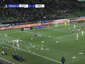 Alors Eli Adams et Lachlan Bayliss ne s’en sont pas laissés compter. Et les deux joueurs des Jets ont tenté de profiter de la perturbation causée par les volatiles pour combiner sur le coup franc et décaler un partenaire dans la surface. La défense locale restée vigilante, l’action ne donnera finalement rien, les deux équipes se quittant dos à dos.
