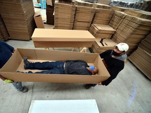 Yuriy Peftiev, entrepreneur du coin, produit déjà ces modèles en carton. Il souligne que les anciennes règles découlaient d’une interprétation rigide des textes officiels. “Quelqu’un est chargé de rédiger un règlement, relate-t-il auprès du Moscow Times. Comme il sait que les cercueils sont généralement en bois, il le rédige ainsi. Et une fois qu’il est écrit ‘en bois’, il doit être en bois”.