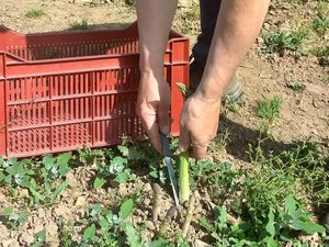 Il le prouve sur le terrain de ces parcelles, installées en contrebas du hameau de Camboulan. “En une journée, si les conditions sont réunies, l’asperge peut prendre dix centimètres. La semaine dernière, il y en avait plein. Là, on manque de pluie, leur nombre s’est réduit”. Sur les rangs qu’il désherbe à la main et non avec des produits, conformément aux normes bio, on remarque des pousses, certaines bonnes à couper même si le matin, il a déjà récolté. Au regarde de leur finesse, de loin, il faut avoir l’œil aiguisé pour repérer qu’il s’agit d’un champ d’asperges.