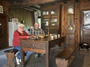 À l’étage du moulin, dans l’ancien appartement du meunier, la scène dit tout. Les meubles sont anciens, les objets d’époque, et l’évier en pierre n’a pas bougé. Autour d’une grande table en bois, les verres d’eau-de-vie maison circulent, le café fume encore. Par la fenêtre ouverte, on entend tourner les meules, entraînées par l’eau qui coule juste dessous. Le moulin continue de vivre, animé par son souffle d’autrefois.