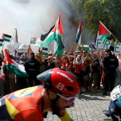 Des manifestants propalestiniens lors du passage du peloton lors de la 20e étape de la Vuelta, le tour d’Espagne cycliste, à El Escorial, le 13 septembre 2025. PIERRE-PHILIPPE MARCOU/AFP Lire plus tard Google Actualités Partager Facebook Bluesky E-mail Copier le lien Envoyer S’inscrire pour lire Des militants propalestiniens qui interrompent, dimanche 14 septembre, la Vuelta, le tour d’Espagne cycliste, […]